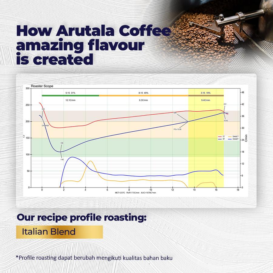 The Arutala brand guarantees a premium coffee experience with ethically sourced beans. Indulge in the Italian Blend and transform your everyday coffee moment into something extraordinary.