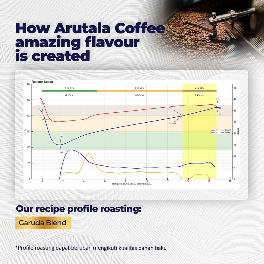 Introducing the Coffee Garuda Blend, a delightful mix that brings the best of both worlds from Arutala. With a perfect combination of 50% Arabica and 50% Robusta, this blend is crafted for coffee enthusiasts who appreciate a rich and balanced cup. The exclusive zipper flat bottom pouch ensures your coffee remains fresh and flavorful.